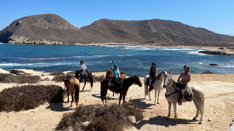 En spännande långritt genom den extraordinära naturparken Cabo de Gata. Ni längs den pittoreska kusten, över vackra stränder och in i de fascinerande dalarna inåt landet. Landskapet du möter är helt unikt och överraskande, med enastående kontraster runt varje hörn. Dessutom gör regionens utmärkta klimat, med låg nederbörd och milda temperaturer, att du kan njuta av denna upplevelse när som helst på året. Förbered dig på ett oförglömligt äventyr i en vacker naturmiljö!