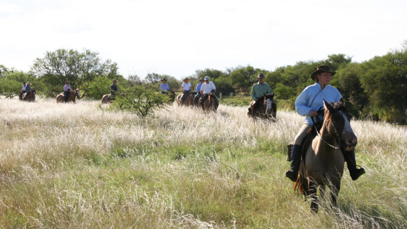 Dag 5 – Estancia: Efter frukost flyttar ni till den vackra 1800-tals Estancian för ridning och boskapsarbete och där ni ska tillbringa natten. Det finns några aktiviteter, typiska för en argentinsk Estancia, att njuta av om du föredrar att inte ägna dig åt heldagsridning, som hästkörning, folkmusik, "Doma India" (argentinsk hästviskning), vandring, cykling och fågelskådning. Denna Estancia har både boskapsuppfödning och jordbruk. Lunch och middag på Estancian.