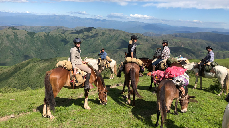 Dag 6 - Ridning: Ridningen idag kommer att ge en dag full av kontraster. När ni rider österut kommer ni att korsa the dead Lion range. Öknen övergår gradvis till gräsmarker. Detta är hem för kondoren. När ni når cirka 3000 meter få ni kanske möjlighet att se några. Nu börjar ni färden in i den täta skogen i Lerma dalen. Vid solnedgången kommer ni till El Churqui bergsläger (1960 meter ) där ni är väntade med en energigivande hemlagad måltid.