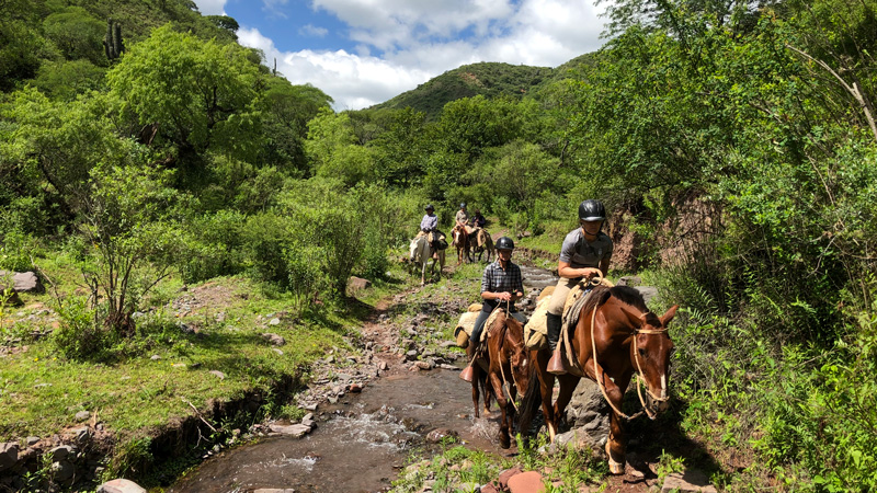 Dag 7 – Ridning: Efter frukost njuter ni av denna pittoreska by. Besök den gamla kapellet och dess 1600-talsmålningar som kom från Peru, och prata med de lokala invånarna. Efter lunch rider ni till foten av Sierra Pelada. Dessa flerfärgade kullar är unika. Ni rider också längs Río Salado, vilket är ett bra ställe för galopp! Natt i Amblayo. Traditionell getgrillning till middag.
