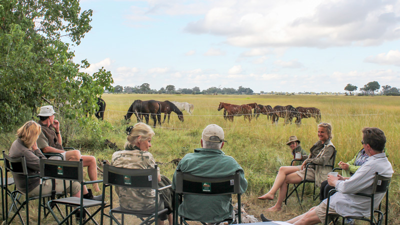 Dina värdar, David och Robyn, både födda och uppväxta i Afrika, har en passion för att utforska de mest avlägsna och vildaste platserna i Afrika på hästryggen. David är känd som en av Afrikas mest erfarna beridna safari guider. Tillsammans har de drivit sin egna hästsafari sedan 1993 vilket möjliggjort att de kunnat kombinera sin kärlek till hästar med kärleken till den afrikanska vildmarken. David själv eller någon av hans mycket erfarna guider kommer att leda din safari. Tyngdpunkten ligger på totalupplevelsen, ridningen och hästarna är av bästa kvalitet, djurlivet är häpnadsväckande och maten (kokt över öppen eld) är fantastisk.