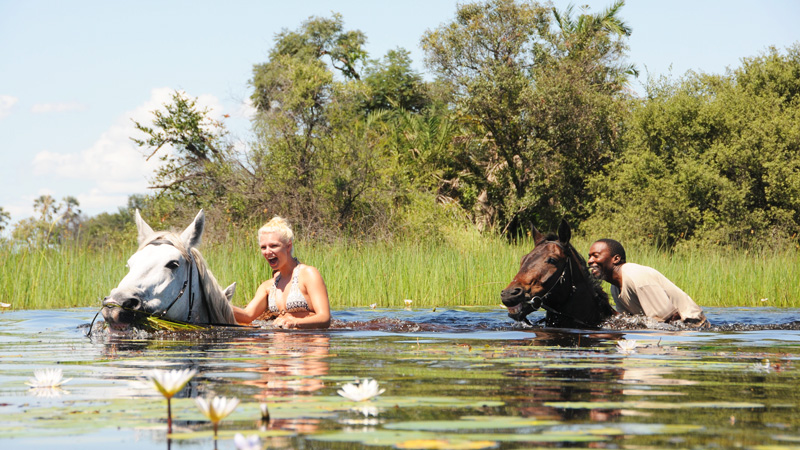 Här finns chans att se massor av djur som är beroende av deltats vatten, såsom lejon, hyenor, buffel, vildhund, elefant, antilop, flodhäst, krokodiler, vildsvin med flera och över 400 fågelarter. Det finns ett femtiotal hästar i alla storlekar passande erfarna ryttare. Hit kan du även ta med partner och vänner som inte rider då det finns spännande kanotturer, fiske och utflykter till fots.