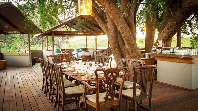Tree Camp Detta är varje barns dröm: bokstavligen ett läger i ett träd. Ett unikt läger byggt 4 meter över marken, runt grenarna av ett forntida Mashatu-träd och två blyträd. Denna plats med utsikt över Majale-floden erbjuder en spektakulär panoramautsikt över de intilliggande klipporna och slätten mittemot där Mashatus legendariska elefantbesättningar vandrar. Fem vackra, rymliga takytor med takdukar inrymmer himmelsängar och klassiska antika möbler. Det finns en rymlig matsal och lounge på den upphöjda plattformen för avkoppling. Detta verkligen extraordinära läger är ett som du kommer att minnas under kommande år.