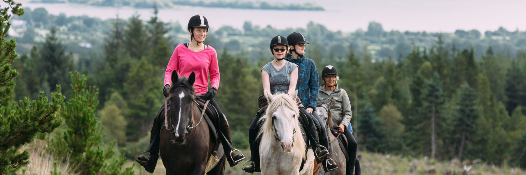Spännande ridning – branta upp- och nedförsbackar, ridning genom vatten flera gånger, och till och med genom en sjö!