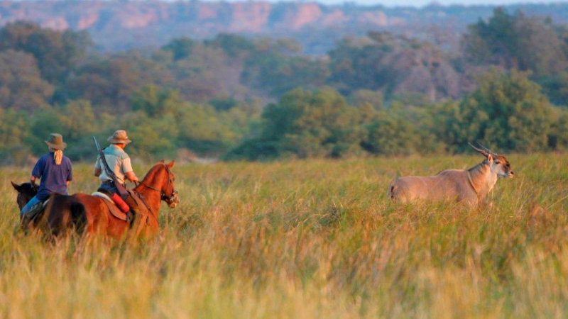 Dag 4 En tidig start behövs för den långa ritten från Camp Davidson till antingen Savannah Lodge längst i sydväst om reservatet, eller Seringa Lodge i sydöstra delen. Den första delen av rutten täcker ett land som ni nu kommer att vara lite bekanta med, men som snart går in i ny terräng. På sina håll är bushen tjock men efter ett tag öppnar sig landskapet mot gräsmarker med vidsträckt utsikt mot söder och väster. Att rida genom detta landskap ger en känsla av vidderna på de afrikanska slätterna. Området har en mycket hög koncentration av vilt med hjordar på över 300 blesbuckar, eller 80 eland, ofta sedda. Andra arter som är hem för slätterna inkluderar röda hartebeest, tsessebe och struts. Det finns gott om zebra, gnu, impala och giraff, och mindre grupper av sobel, roan och vattenbock. Den sista sträckan till Savannah Lodge är längs en trädbevuxen bäck där kudu och bushbuck sannolikt kommer att ses.