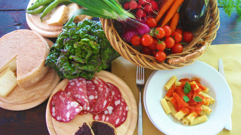 Middagarna startar ofta med två olika pastarätter (t.ex. med broccoli eller tomater, oliver, persilja och olivolja) eller lasagne med pesto och tortellini med krämig skinksås.