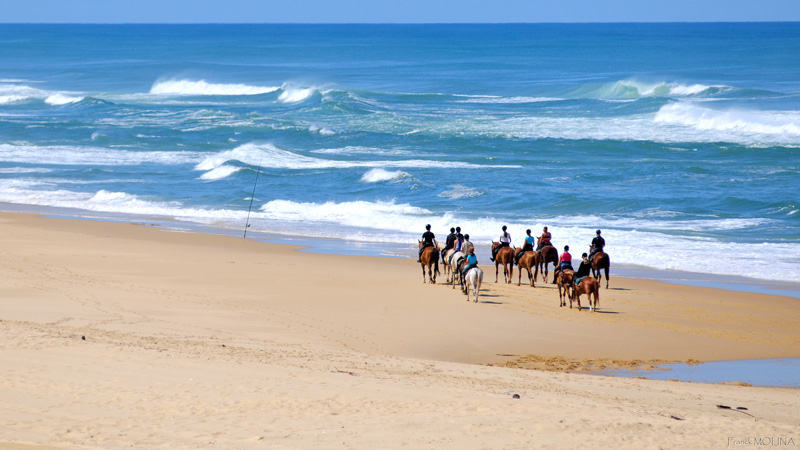 Dag 7. Lördag - Mimizan Village - Aureilhan Lake - Mimizan Beach 30 km / 5 timmars ridning. På er sista heldagsritt rider ni mot the Lac d’Aureilhan, en stor sjö lite norr om Mimizan. Ni rider längs sjö stranden och avslutar dagen i solnedgången på beachen. Denna dag kan ändras beroende på tidvattnet och ni kanske rider längs beachen på morgonen och vid sjön på eftermiddagen.