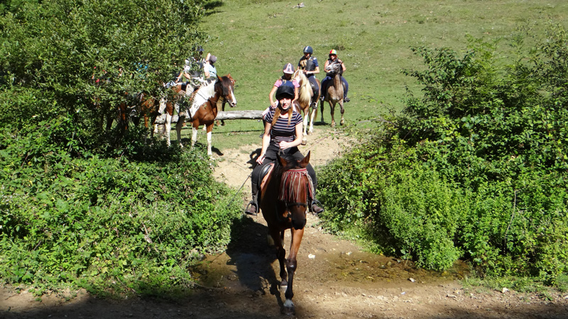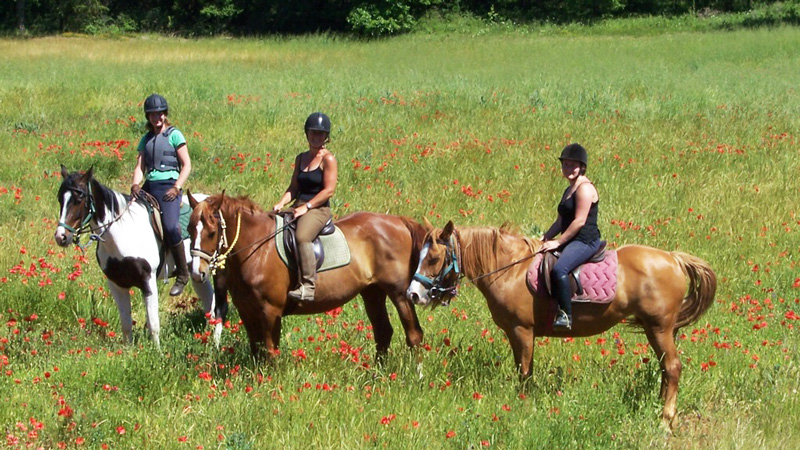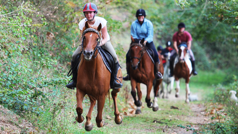 Ridterrängen är både intressant och inbjuder till ett bra tempo. Ni rider genom charmiga byar, orörd skog och raviner, ner i älvdalarna som inbjuder till galopp över böljande slätter. De flesta dagar rider ni två gånger per dag för att få äta i lugn och ro ”hemma” och kanske ta ett lunchdopp i poolen. En annan dag kanske ni rider på en heldagsritt med picknick. Picknicken består av hemlagad mat och serveras med regionens vin vid sittande bord. Det finns även en enkel terränghoppningsbana där du kan prova på terrängritt om du vill.