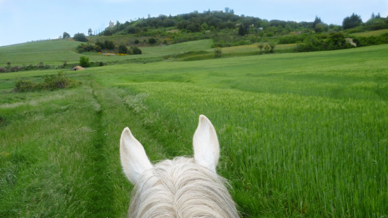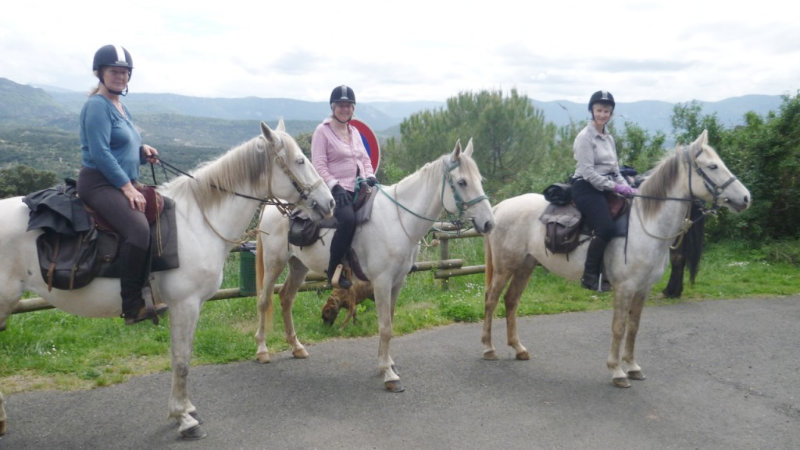 Vilka vyer! Helt magiska ritter med varierat landskap i berg, skog, längs med vinodlingar och in i små byar. Vi fick in en del trav och galopp också, men givetvis är det mestadels skritt i och med terrängen. Det blir 7-8 timmar i sadeln om dagen, så man måste tänka på hästarna. Men fantastiskt för själen.