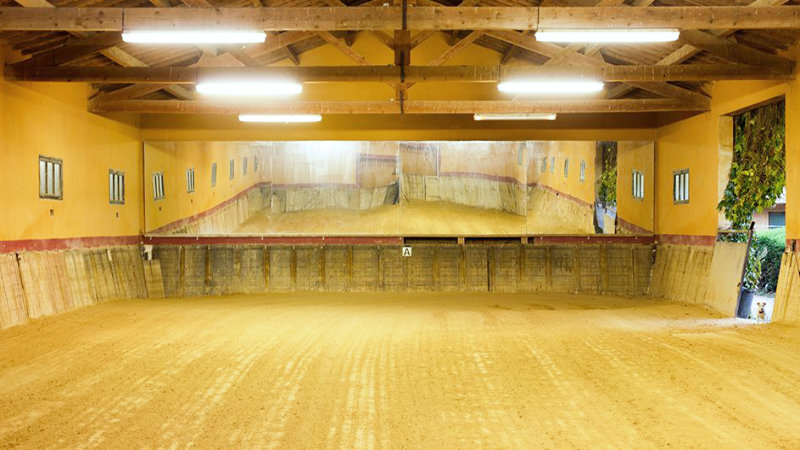 På anläggningen finns ett mindre ridhus och två stora utebanor.