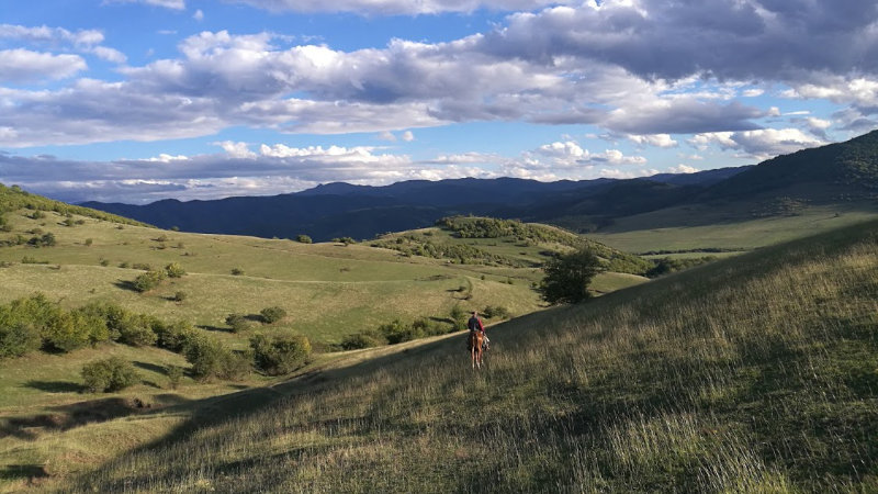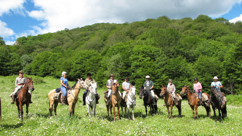 Dag 4 - Frukost i lägret och sedan en chans att njuta av naturen i en timme medan lägret packas ihop. Sedan rider ni genom bokskogen till Gudarekhi-klostret, som är omgivet av ruinerna av Gudarekhis gamla stad (cirka 1 timmes ritt). Detta underbara 1100-talskloster, med sitt vackra flerfärgade klocktorn i sten, är nu obebott. Huvudkyrkan står fortfarande kvar, omgiven av många ruiner, och det finns en underbar mytisk känsla över denna sago plats. En picknick läggs upp i valnötslundarna som omger klostret och det finns tid att utforska före lunch. På eftermiddagen rider ni vidare, först genom skogar igen och sedan till öppna gräsmarker dit herdarna tar med sina får för sommaren genom att använda samma gamla väg som har varit en del av sidenvägsnätet. Du kan ha turen att möta hjordarna av får och nötkreatur, med ryttare på lokala ponnyer eller åsnor och med några flockdjur som bär sina förnödenheter för sommaren. Koklockorna och de sjungande ryttarna hörs ofta över dalarna. Fortsätt genom gamla bokskogar och ängar med vilda blommor tills ni kommer till byn Ivanovka (cirka 3 timmars ritt). Natt på pensionatet hos en lokal familj.