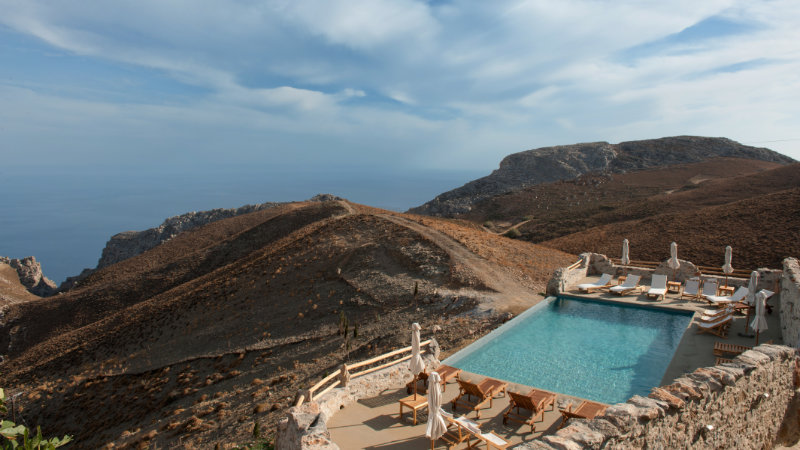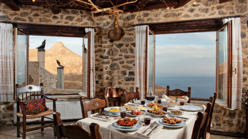 Här har ditt värdpar Popi och Markus under många år byggt upp en elegant by i rustik stil på ett undangömt ställe med en makalös utsikt över mäktiga berg och Medelhavet. De har en sann passion för att bevara det genuina och traditionella både gällandet boende, maten och sin produktion av feta ost, och att dela med sig av detta till en liten skara av naturälskare.