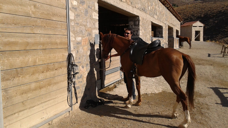 Runt gården finns miltals av gamla stigar och vägar som gjorda för att utforska den spektakulära naturen på hästryggen. Du kommer att rida genom pittoreska byar, olivlundar och längs gamla stigar som har använts i århundraden. På veckoritten kan ni rida i väg på en tvådagarstur ner till havet och bo på ett kloster och äta middag med munkarna, och om vädret tillåter kan du bada med din häst.