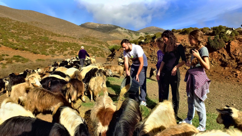 På gården, finns förutom hästar även 300 getter, 150 får, grisar, kor och höns. Majoriteten av djuren strövar fritt på de 1000 hektar stora ägorna. Varje morgon förvandlas hundratals liter get- och fårmjölk till fetaost och andra läckra ostsorter.