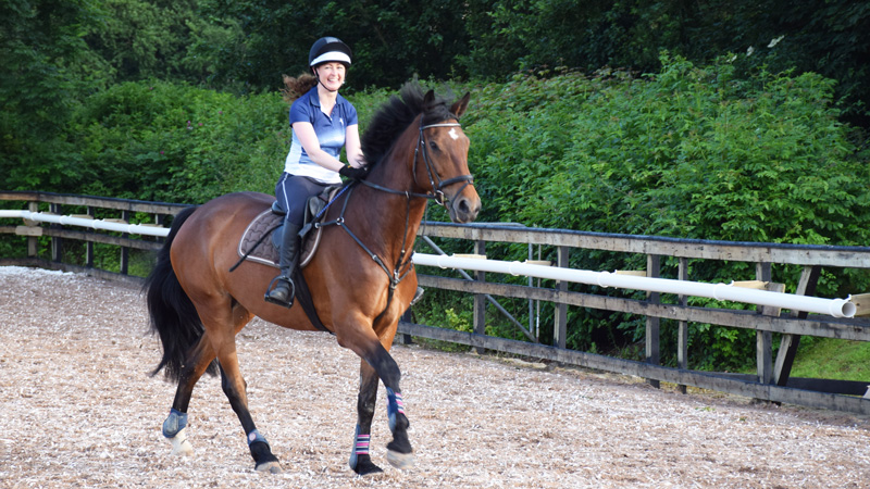 "Till middag fick vi mat via Hello Fresh och kylskåpet var fullt med frukost och lunch. Sue är en fantastisk instruktör—både kunnig och lättsam. Underbart att kunna rida alla pass utomhus utom det första: markarbete, banhoppning och terränghinder.