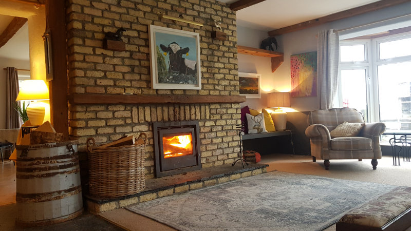 Det är även mysigt att ta lite "After ride" vid den öppna spisen, med en drink från den välfyllda "Honesty baren".