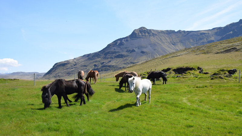 Idag rider ni på en svart sandstrand. På morgonen rider ni längs en flod ner till Grimstaðir, där ni äter lunch. På eftermiddagen rider ni till stranden, med havet på ena sidan och bergspanorama med spektakulära Eyjafjallajökull på andra sidan. Ni töltar genom dynerna (om den djupa sanden tillåter) och korsar tidvattenfloder.
