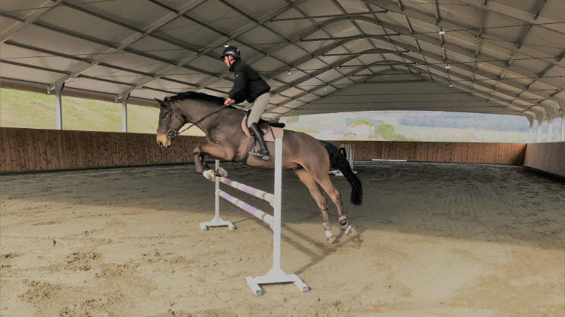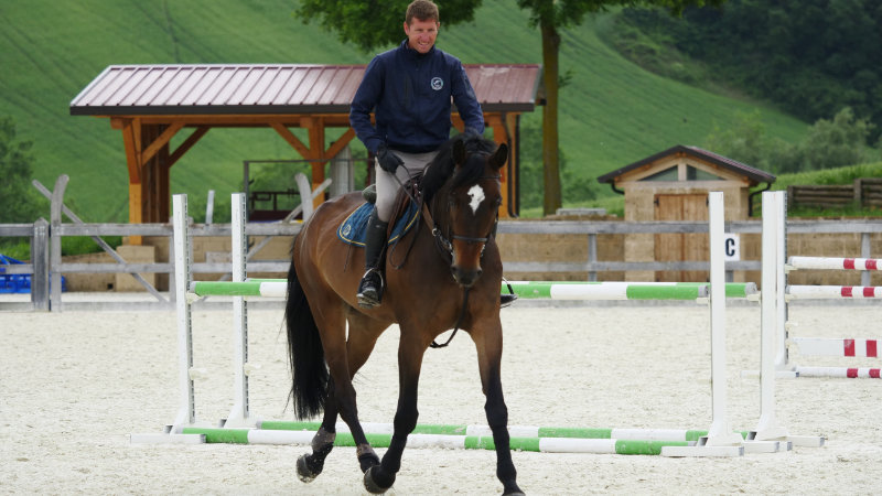 2 pass ridning, blandat markarbete och hoppträning (under sommaren rider ni tidigt på morgonen och sent på eftermiddagen)