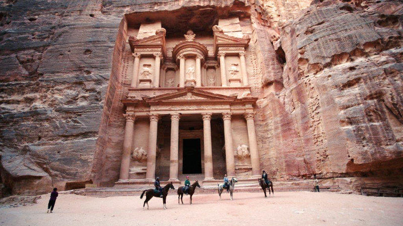 På Petra Wadi Rum långritt blir du mött på flygplatsen och skjutsad till ditt hotell (***). Efter en god natts sömn besöks den gåtfulla staden Petra, med sina amfiteatrar, pelargångar och grottbostäder. Det är imponerande, allt är inhugget i klippor som skiftar i rosa, ockra, choklad och blått. Därefter utforskas den världskända öknen Wadi Rum till häst. Du rider längs Kungsvägen där det tidigare fraktades parfym, guld och ädelstenar. Landskapet förändras hela tiden. Friden, tystnaden och hur liten man känner sig är unik i detta ett av världens stora naturunderverk.