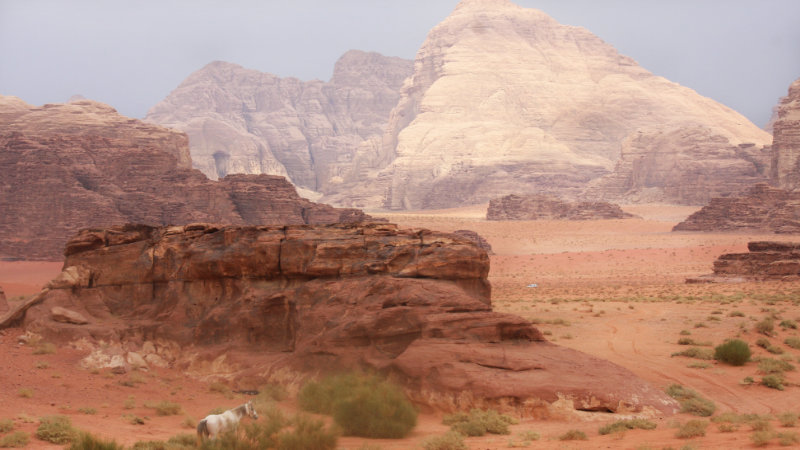 Dag 5 Beer Hammad – Humaimeh – Karazeh Frukost i lägret och sedan iväg genom Ber Hammad längs leden som på nabatiansk och romersk tid förband Wadi Sabra och Petra. Med pigga hästar och fläktande vindar från bergen finns det gott om chanser till spännande trav och galopper där underlaget tillåter. En dynamisk eftermiddag tar er genom kalkstenskullar till porten till öknen "bab el Sahara’’ - vid bra väder kan ni se de röda sandstenen av Jebel Rum, det centrala berget i Wadi Rum-området med topp på 1784 meter. Middag och övernattning i lägret. (Frukost, lunch och middag ingår).