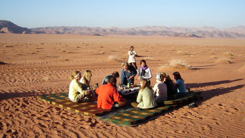 Guider: Dina guider talar engelska. Alla kan första hjälpen och har med sig första hjälp utrustning på ritten. Allt bagage, tält etc transporteras med 1-3 jeepar till de olika lägerplatserna. All personal är lokala jordanier och beduiner.