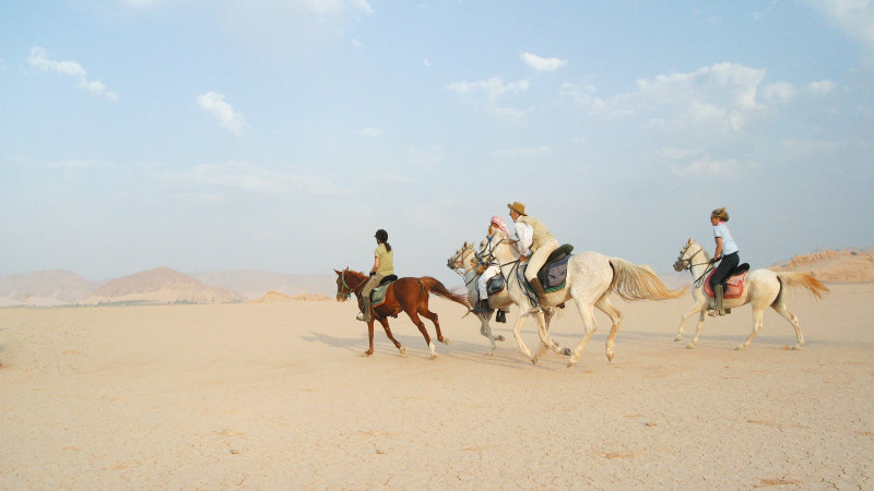 Normalt är underlaget bra med hård packad sand som lämpar sig för ett par uppfriskande galopper. Du förflyttar dig varje dag och bor i små tvåmanstält under mycket enkla förhållanden. Du får uppleva den beduinska livsstilen och måltiderna, som är mycket goda. Äventyret avslutas vid Döda Havet. Det är lyxigt att ta en lång dusch och ett dopp i det salta, turkosblå havet innan det är dags att åka hem. Vi kan boka in extra nätter om ni vill stanna vid Döda havet.