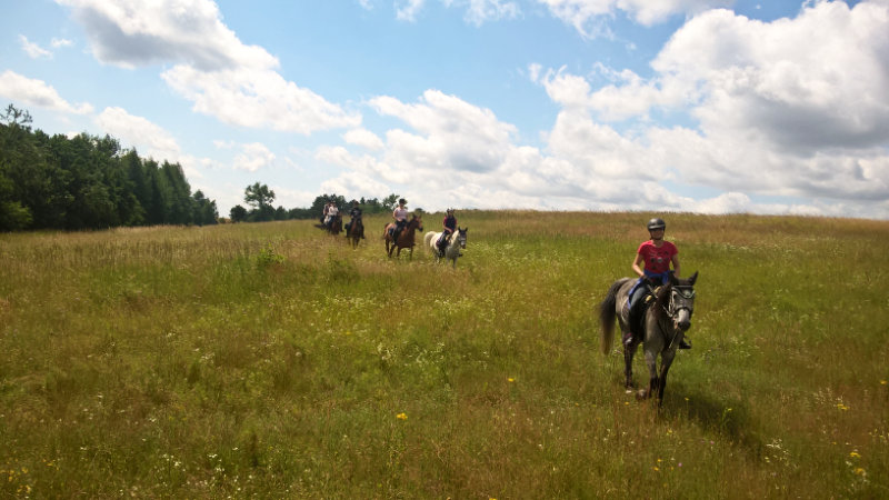 De flesta hästarna är angloaraber och uppfödda på gården. De har det mycket bra och går ute i stora grönskande hagar på dagarna. De är uthålliga och i god kondition vilket möjliggör ett högt tempo med många och långa galopper. Du kommer att få mycket ridning (3-6 timmar/dag). Några dagar utgår ritten från gården och några nätter lämnas hästarna i stall och du skjutsas hem. Ritten går över stora, böljande kullar, längs fina skogsvägar och till regionens största sjö. Du kommer även att besöka ett travstuteri, det tidigare statligt ägda stuteriet Lobez. Efter en härligt lång ritt och en god middag är det mysigt att sitta framför brasan och provsmaka hemgjorda likörer.