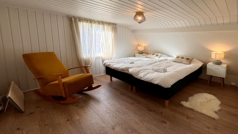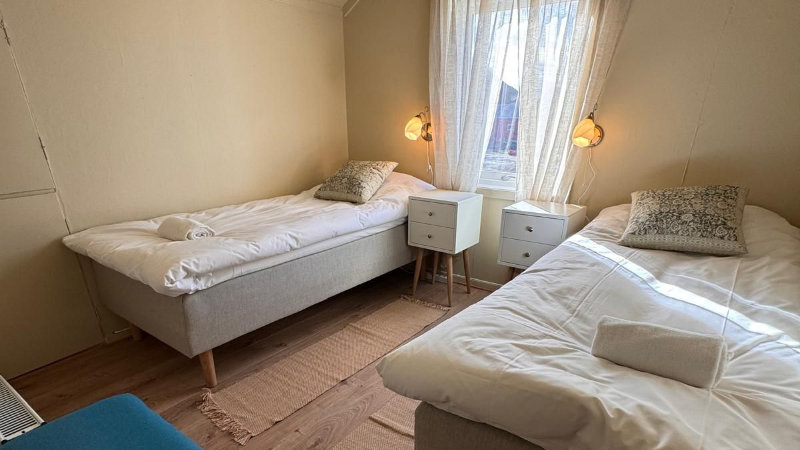 Boendet var i ett härligt, rymligt hus precis intill stallarna och paddocken. Sängarna var nya och mycket bekväma att sova i. Terrassen var en perfekt plats för att spana efter norrsken på kvällen.