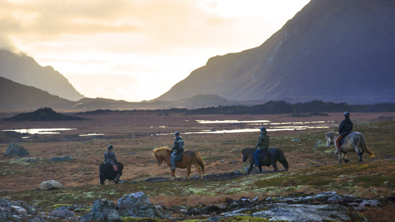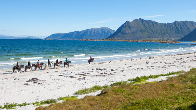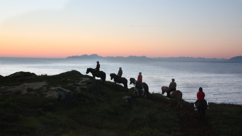 På Långritt i vikingars fotspår får du rida bland berg med vidunderlig utsikt, njuta av de vita stränderna och lära dig lite om geologin och djurlivet på ön och se reliker från vikingatiden. En dag rider ni till en gård som bedriver ett mångfacetterat gårdsbruk med egen ostproduktion, örthage och olika djur. Tillbaka på gården i Gimsøy bjuds du på smakrik och lokal mat förankrad i gårdens historia och mattraditioner.