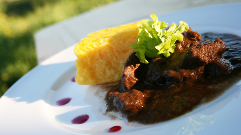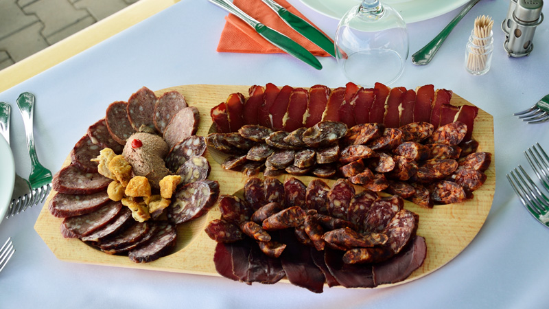 Du bjuds på traditionell transylvansk mat, som också innehåller lokalt producerade köttspecialiteter. Frukost är en buffé med varma och kalla rätter med te och kaffe. Lunch är antingen picknick ute på ritten eller en traditionell hemlagad måltid. Middagen är trerätters i den stora matsalen. Vegetarisk och glutenfria rätter kan tillagas. Meddela horseXplore i förväg.