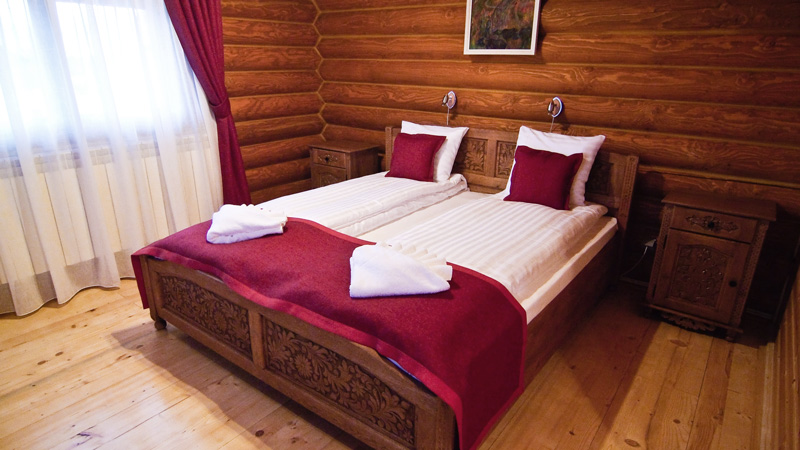 Du bor i en modern och elegant jaktstuga bredvid en 400 hektar stor djurpark, omgiven av skogarna i Harghitabergen. Alla rum har eget badrum. Lakan, handduk och hårfön finns på plats. Det går att boka enkelrum (Pris för enkelrum finns under Datum och pris, Boka på förfrågan). Enkelrumstillägg tillkommer om det inte finns någon att dela rum med.