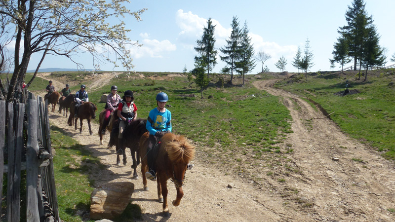 Torsdag - Efter gårdagens spännande och långa ritt kommer ni idag att rida norrut. Först genom en bokskog, och sedan genom en tät tallskog som ni gradvis klättrar uppför i Izvoaredalen. Här kan du njuta av din hästs bekväma tölt. När ni når Szelesberce, stannar ni för en kort paus och fortsätter sedan ner till fältet Sicasau. Här vattnar ni hästarna i Sicasauströmmen och äter lunch på en närliggande kulle. Sen går turen tillbaka genom djurparken.