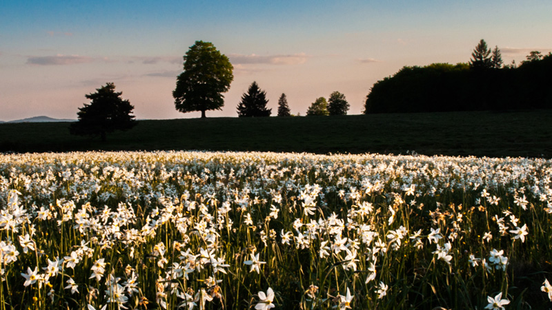 I slutet av maj och juni är det perfekt för dem som älskar att se vilda blommande blommor. De vackra narcissusfälten i slutet av maj är en av de många attraktionerna i regionen.