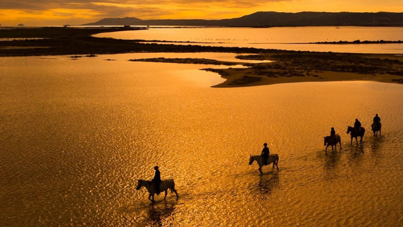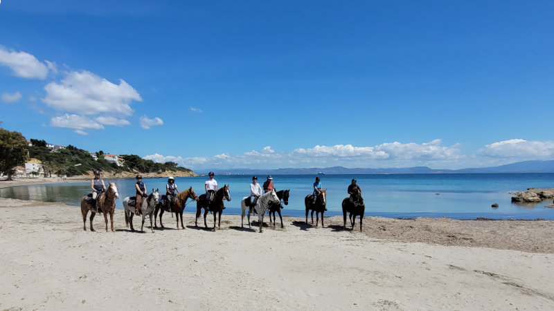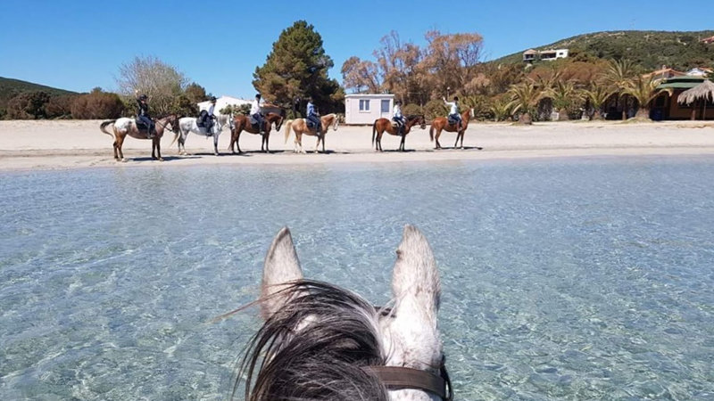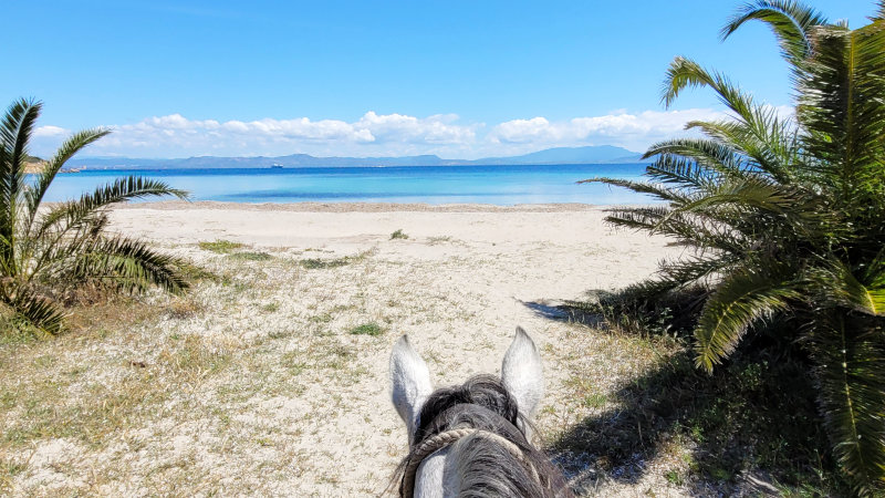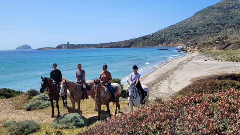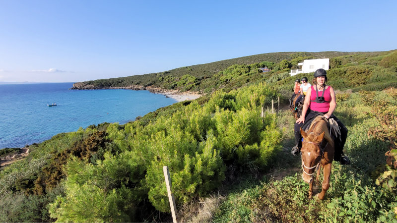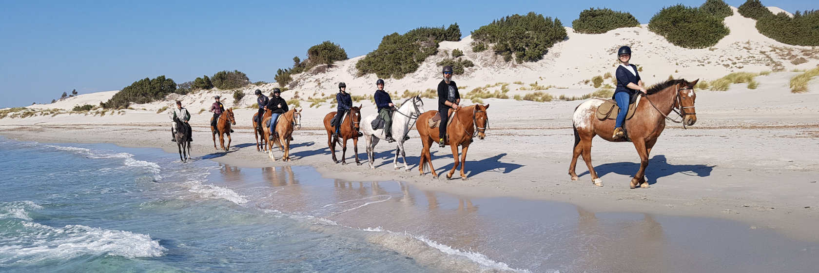 Ni startar ridturen från gården och följer en lokal flod i riktning mot havet på sydkusten och Porto Botte, en blåsig vik särskilt älskad av kitesurfare. Ni når Is Solinas, en annan härlig strand som också är mycket uppskattad bland kitesurfare, rider vidare till den romantiska bukten Su Portu e Su Trigu, och slutligen kommer ni till den mycket kända stranden Porto Pino, som kännetecknas av dess vita sand och sanddyner som är Unescos arv.