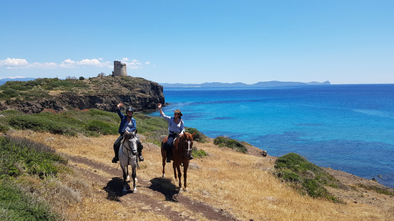 Ni och hästarna körs till östra sidan av ön S.Antioco. I ett före detta stenbrott lastar ni av hästarna och börjar rida till den vackra stranden Maladroxia genom medelhavsvegetationen fram till kustlinjen i söder till den vilda stranden Coe' Cuaddus, vidare till Turri med dess majestätiska 700 år gamla torn som dominerar kusten och dess inre vikar - några sandiga och ibland steniga, det beror på havets nycker.