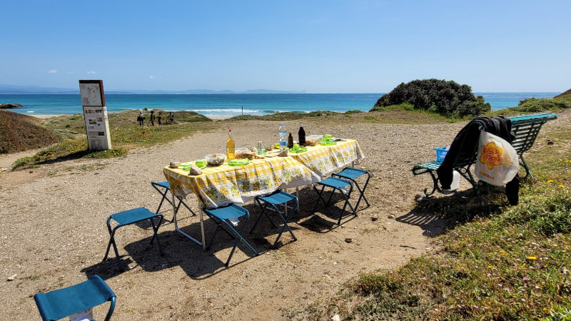 Luncherna är picknicks som serveras sittandes vid bord. Du bjuds på ett urval av färskt bröd, sallad, ost, oliver, kallskuret och sardiska specialiteter tillsammans med vin, vatten eller läsk. Kaffe eller te finns tillgängligt på begäran. Vinet till luncherna är boxviner för att underlätta transporten.