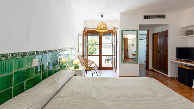 Du bor på hotell i dubbelrum med eget badrum och de är idealiskt beläget nära stranden (5 -10 minuters promenad) och ligger inom gångavstånd från hästarnas hagar. Det är fräscht och modernt med en vacker utsikt mot nationalparken och Sierra Nevada i bakgrunden. Restaurangen har god, vällagad mat, tillredd med främst lokala råvaror. Rätterna är främst spanska med gott om färska grönsaker och ofta olika fiskrätter.