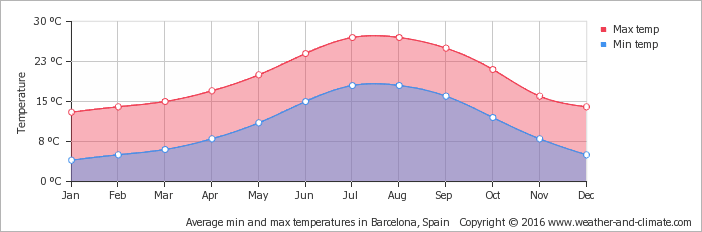 Från april till slutet av oktober är det normalt mer än 25 grader dagtid. Under juli-augusti kan det blir mer än 30 grader varmt i skuggan. Havsvattnet har en temperatur på ca 25 grader ända in i slutet av oktober, men är kyligare på våren. Regnar gör det sällan utom under november till februari.