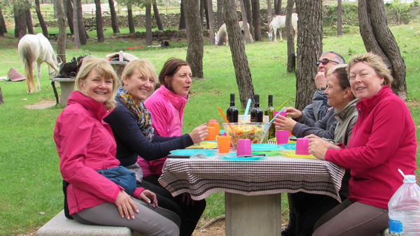 och persika, päron och äppelodlingar. Tempot idag är livligt! Ni fortsätter ritten tillbaka till hästgården Can Sort efter vår dagliga picknick i en vintergrön ekskog. Ni körs tillbaka till gården för övernattning.