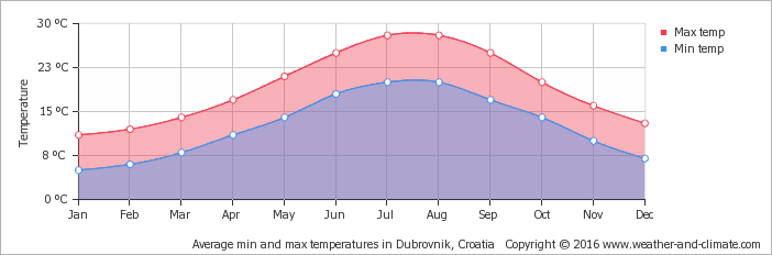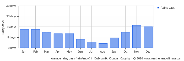 Större delen av Kroatien har kontinentalt klimat med varma somrar och kalla, snörika vintrar. Kustområdet har ett typiskt medelhavsklimat med milda fuktiga vintrar och varma soliga somrar. Kroatien är ett av de soligaste länderna i Europa enligt statistiken.