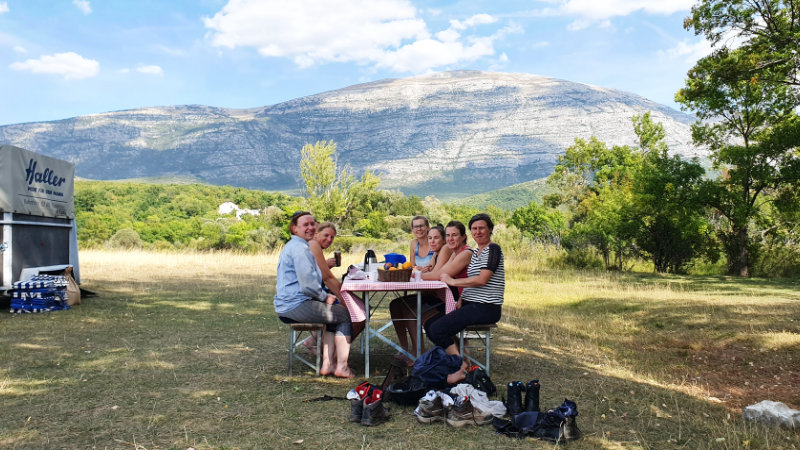 "Rikligt med mat – grillat kött, fisk och goda grönsaker. Frukost och lunch var helt ok, och när vi övernattade på annan plats fick vi med oss lunchbaguette med grönsaker och frukt. Fri tillgång till lokalt vin och öl, vilket var mycket uppskattat! Naturen var storslagen och otroligt vacker – det var länge sedan jag blev så hänförd! Ägaren Bosko har verkligen hittat en fantastisk ridväg. Vi red totalt 150 kilometer, så detta är inget för nybörjare. Längtar redan tillbaka! Den här resan hade allt – fantastisk ridning, underbar natur, storslagna vyer, trevligt umgänge och god mat."