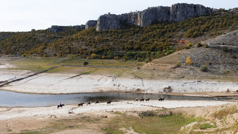 På morgonen fortsätter ni er ritt med både trav- och galoppsträckor till en kanjon till floden Cikola. Ni rider ner i kanjonen som är den vackraste platsen i nationalparken. Ni passerar ett 1500-talsfort som heter Kljucica. På er högra sida kan ni se floden Cikola som rinner in i Visovaksjön omgiven av enorma klippor och rik blomsterprakt. Ni forsätter till stället där ni kommer att korsa floden Cikola. Nu börjar ni klättra uppför kanjonen och uppe igen äter ni lunch.