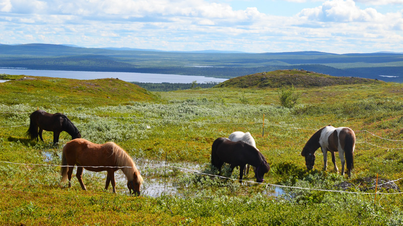 Andra dagen rider ni en heldagstur upp på fjället där ni möts av fantastiska vyer. Under turen stannar ni för lunch som tillagas över öppen eld. En tre-rätters middag väntar när ni kommit tillbaka till gården och vedeldad bastu erbjuds, härligt efter en dag ute. Dagen därpå rider ni också en heldagstur, äter middag tillsammans och de som vill har möjlighet att basta även denna dag. Under dessa dagar rider ni både i Nikkaluokta och i Puoltsa. Till Nikkaluokta tas ni med bil. Turen avslutas den fjärde dagen med frukost och transfer tillbaka till Kiruna.
