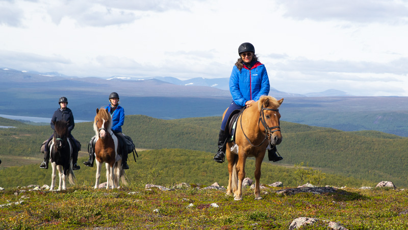 En flerdagarstur där du får uppleva fjällen från hästryggen. På denna tur övernattar du bekvämt inomhus och serveras mat med lokal prägel. Efter en dag på hästryggen och tre-rätters middag erbjuds bastubad. Ni rider dagsturer både på fjället och i dalgången med en vidunderlig utsikt över Kebnekaisefjällen. Ni rider både efter stigar, bredare leder och i obanad terräng, så ni kan variera tempot på ridningen.