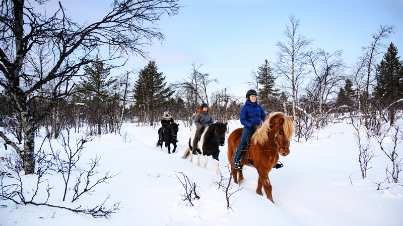 Välkommen till en fascinerande vintervecka med ridning på islandshäst kombinerat med andra aktiviteter. Det är spännande att rida i snön, i mörker och i dagsljus. Förutom att rida ut på tur får du också rida lektion, besöka det berömda Ishotellet (där du mot tillägg kan övernatta i ett isrum), åka rensläde, samt lära dig om den samiska kulturen och åka ut med skoter. Du guidas av samiska guider denna vecka, väl förtrogna med området, naturen och djuren. Här får du uppleva lugnet och tystnaden, samt förhoppningsvis se norrsken, renar och älgar och andra djur.