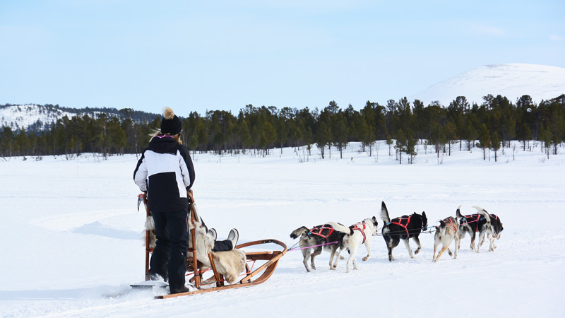 Istället för att besöka Kiruna kan du välja en hundspannstur på delad släde för 2900 kr/pers (2p per släde, inkl lunch)