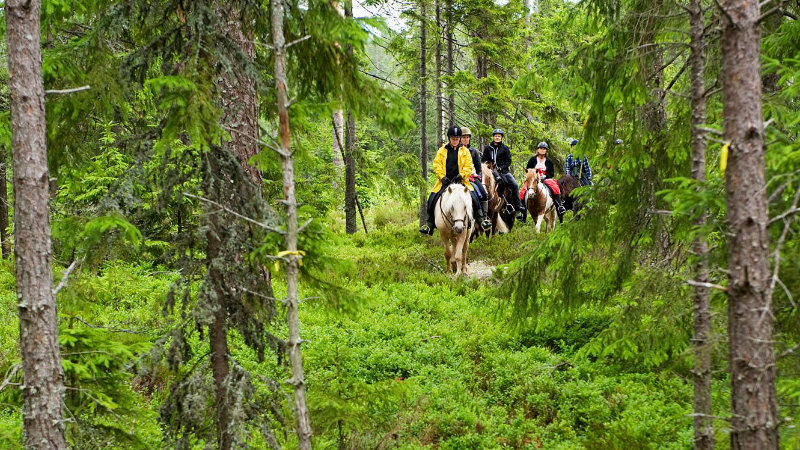 Ridning: Här bjuds på ridning på islandshäst och andra töltande raser. Omgivna av de skyddade vilda skogarna i Tiveden, rider ni fram bland stenar med mjukaste mossa, klara sjöar och hänförande utsikt på stigar som använts sedan urminnes tider.