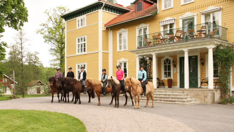 Det blir en helg med boende på vackra Sätra, en herrgård från 1700-talet, med god mat och underbara hästar.