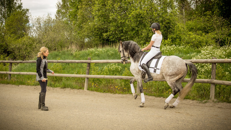 Din tränare Jenny fokuserar på dig som ryttare, att din sits och position är korrekt och att tajmingen för dina hjälper är rätt. Hon har ridit in och utbildat alla sina hästar själv och känner dem utan och innan. Detta gör det lätt för henne att se vad du måste förändra eller göra för att få hästen att utföra det du vill.