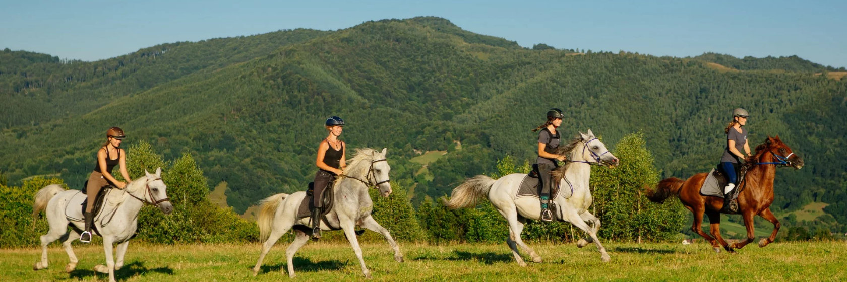Idag ger ni er iväg på en hel dagsritt längs ängarna och genom skogarna vid foten av bergen med fantastiska vyer och massor av möjligheter för galopp över ängarna. Du kommer att bli förbluffad av mångfalden av vilda blommor och ni kan stöta på spår av björnar eller vildsvin. Ni stannar för lunchraster på vackra ängar med spektakulär utsikt och återvänder på eftermiddagen tillbaka till stallet.